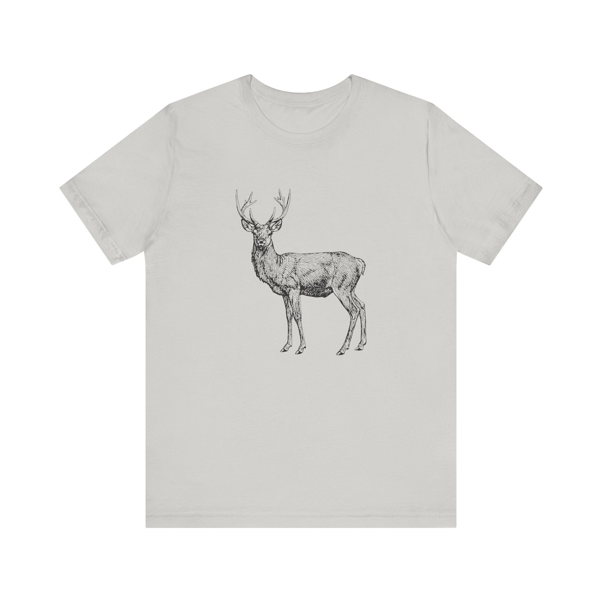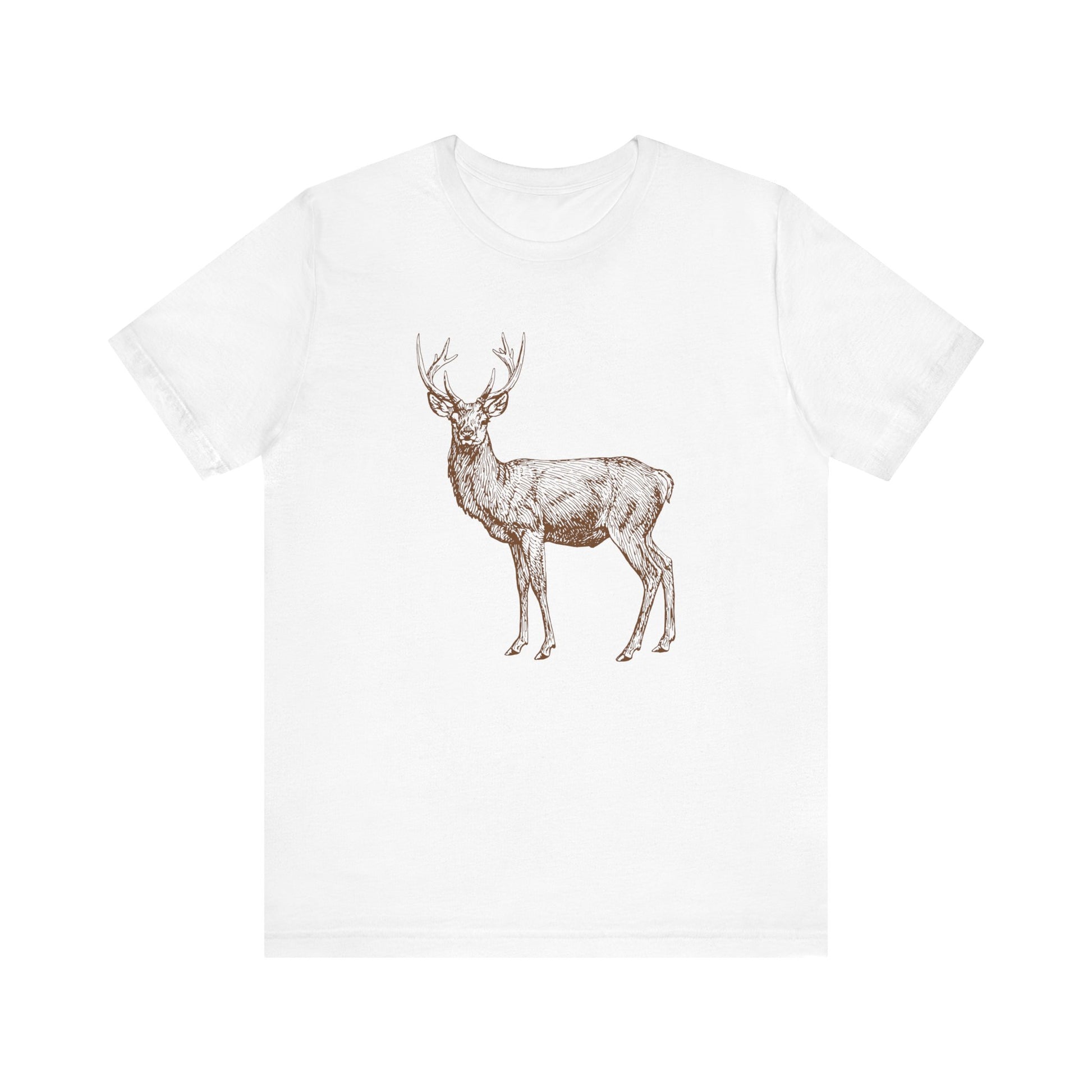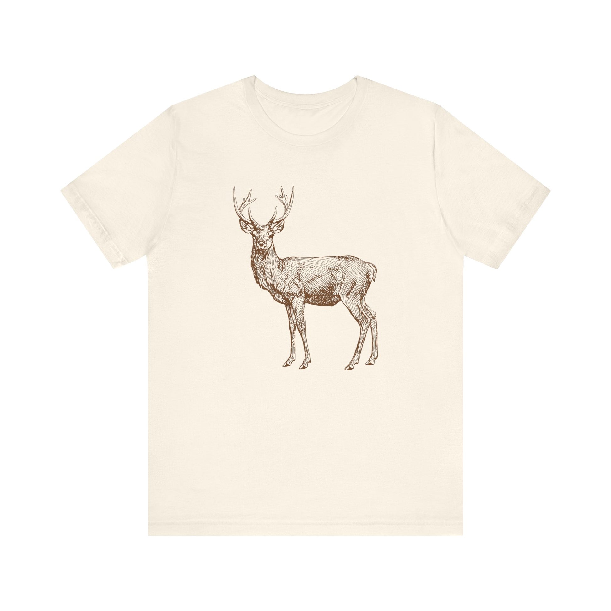 This classic unisex jersey short sleeve tee features a replica of a vintage engraving of a Buck Deer. It will fit like a well-loved favorite, with a ribbed-knit collar and tapered shoulders for comfort. This super-soft cotton t-shirt will be your go-to tee for years to come.